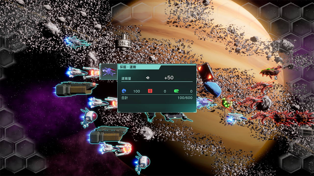マップにある鉱石から「資源」を採掘・運搬します。資源は、ユニットの開発や基地や施設の設置・建設に欠かせません。通信対戦では資源をベットして(賭けて)戦うこともできます。