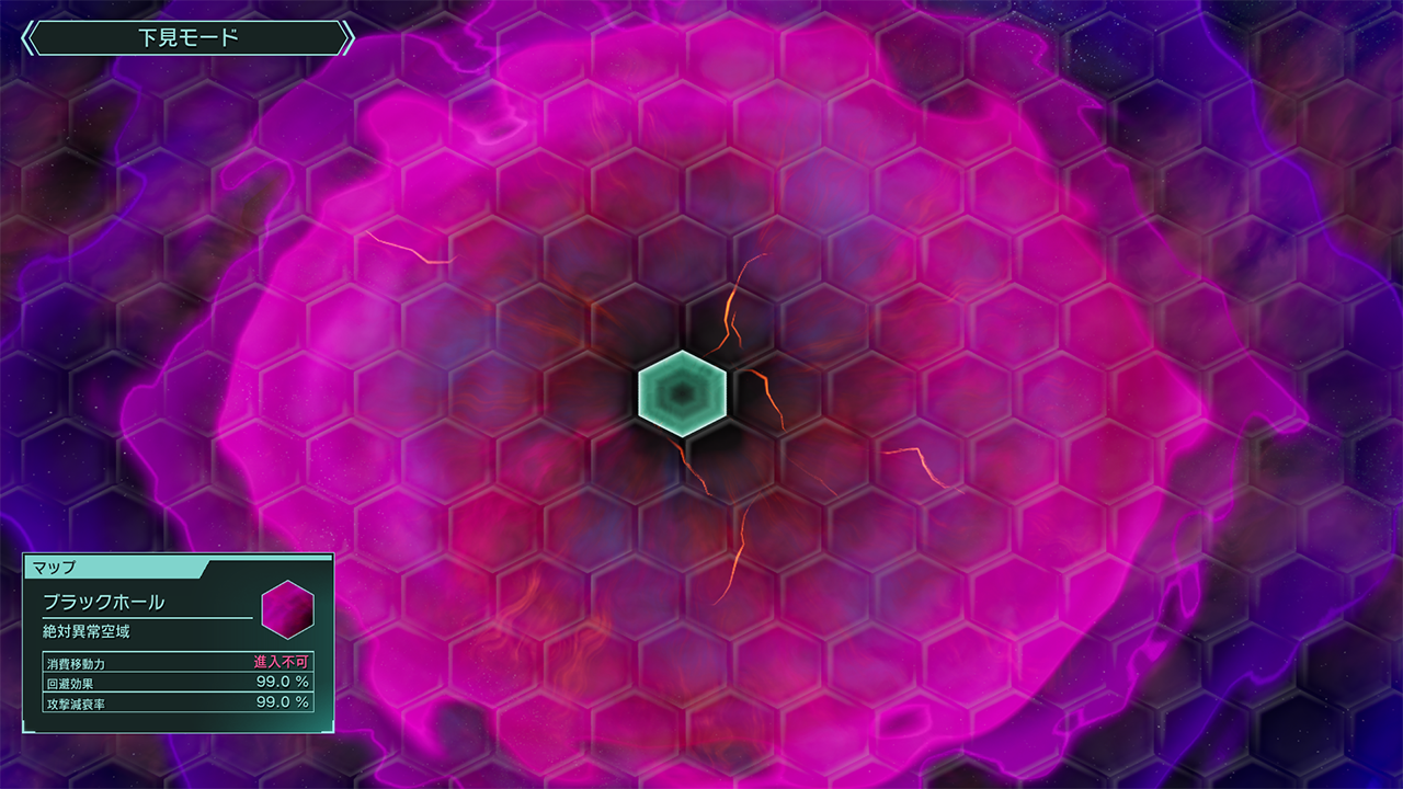 すべてを飲み込む暗黒の天体です。重力の影響により移動が妨げられる場合があります。中心部に進入したユニットは例外なく消滅します。