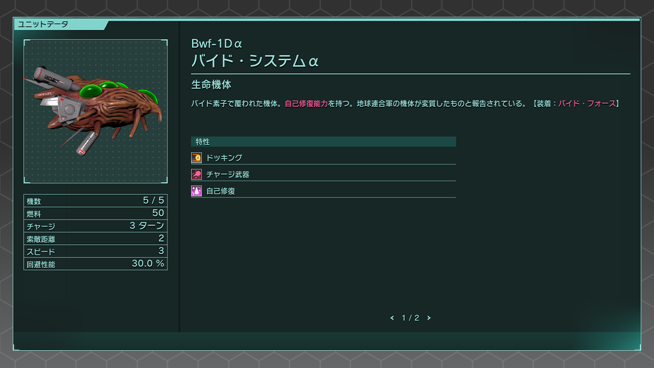 ・自己修復機能(じこしゅうふくきのう): 一部のバイド系のユニットが持つ自らのHP・機数を修復する機能のこと。 自軍のターン開始時にわずかながらHP・機数が回復するが、代わりに原動力(燃料)を消費する。