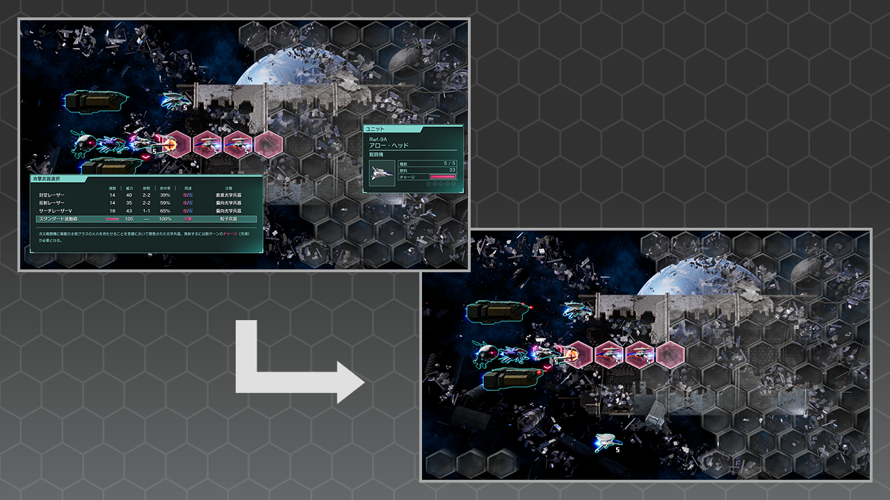 Q3.移動や攻撃の指定の際に、画面に出ているウィンドウがジャマなんだけど…
