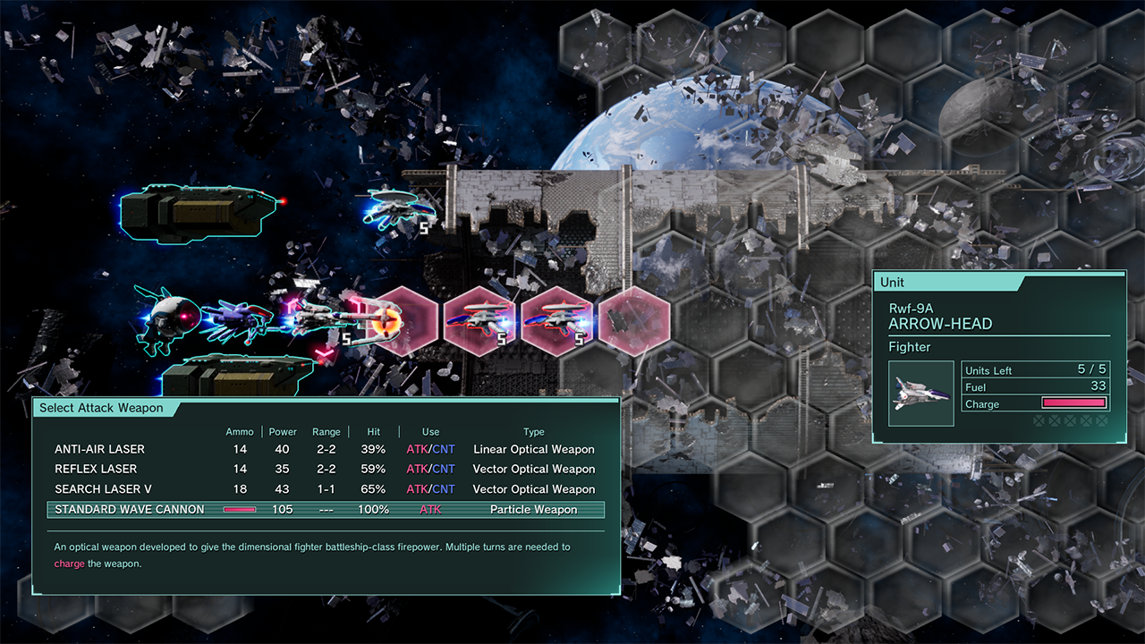 한 번의 공격으로 사정거리 내의 적 유닛 1체를 공격할 수 있습니다. 동일한 사정거리의 무기라도, 직진계 무기는 벽 뒤쪽 등의 장애물에 도달하지 않습니다.