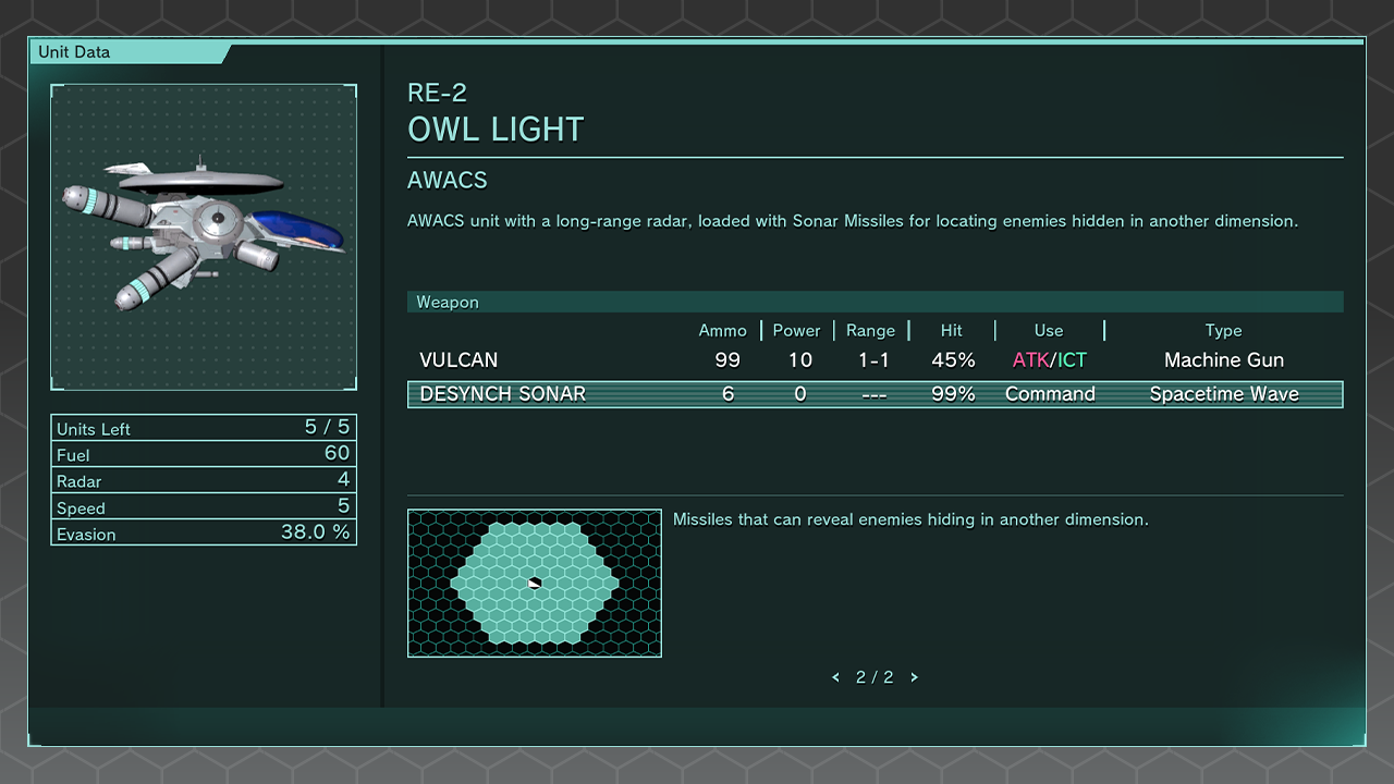 使用亞空間聲納的單位周圍會發生效果。確定亞空間中的敵方單位位置後,地圖上的六邊形顏色會發生變化。